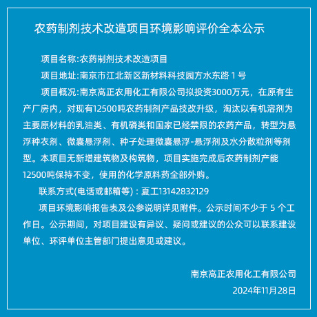 定將現有項目整體搬遷至江蘇省如東沿海經濟開發(fā)區(qū)。搬遷完成后,將形成年產1000噸戊唑醇、200噸吡丙醚、500噸噻蟲啉、200噸環(huán)丙唑醇原藥的生產規(guī)模... |